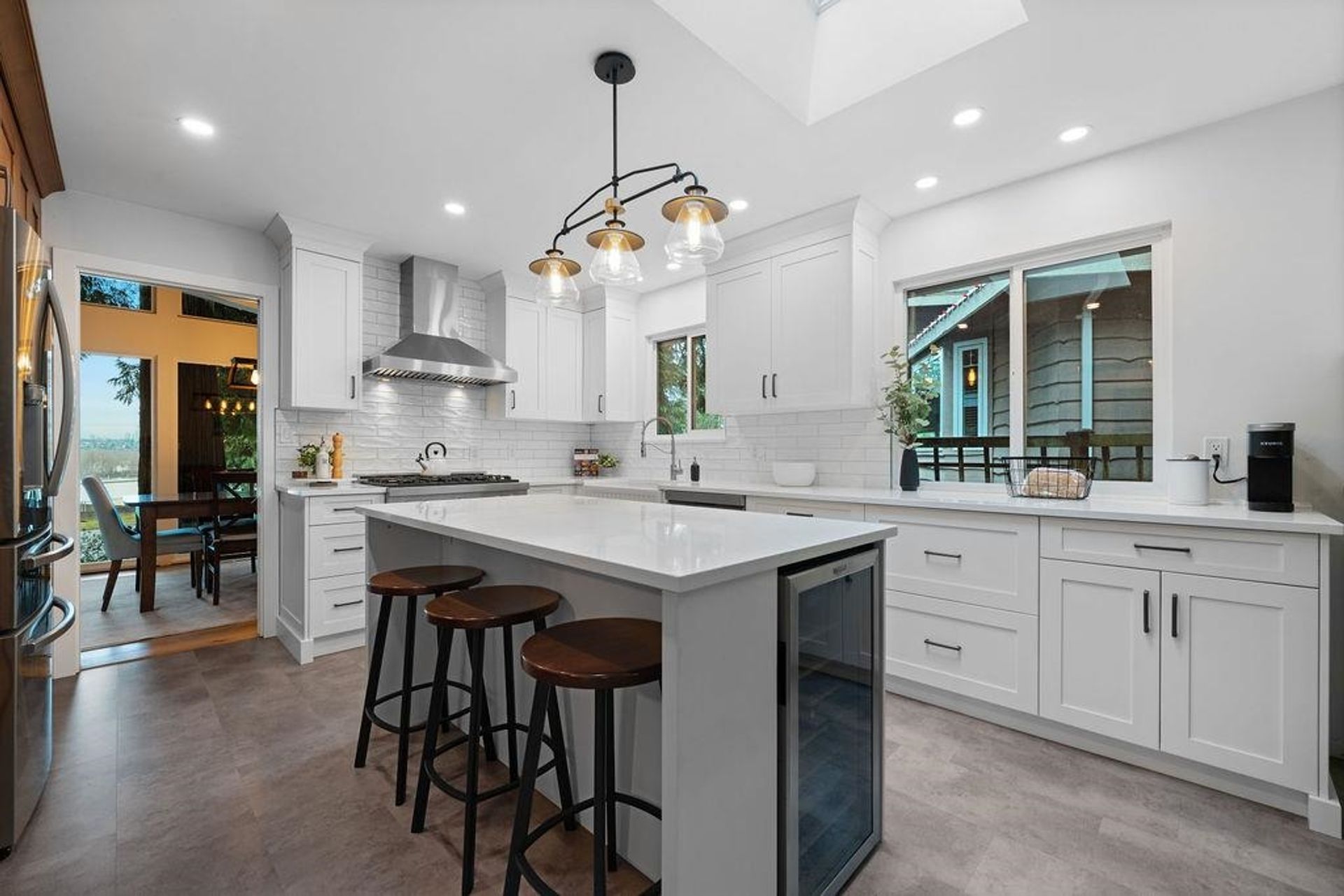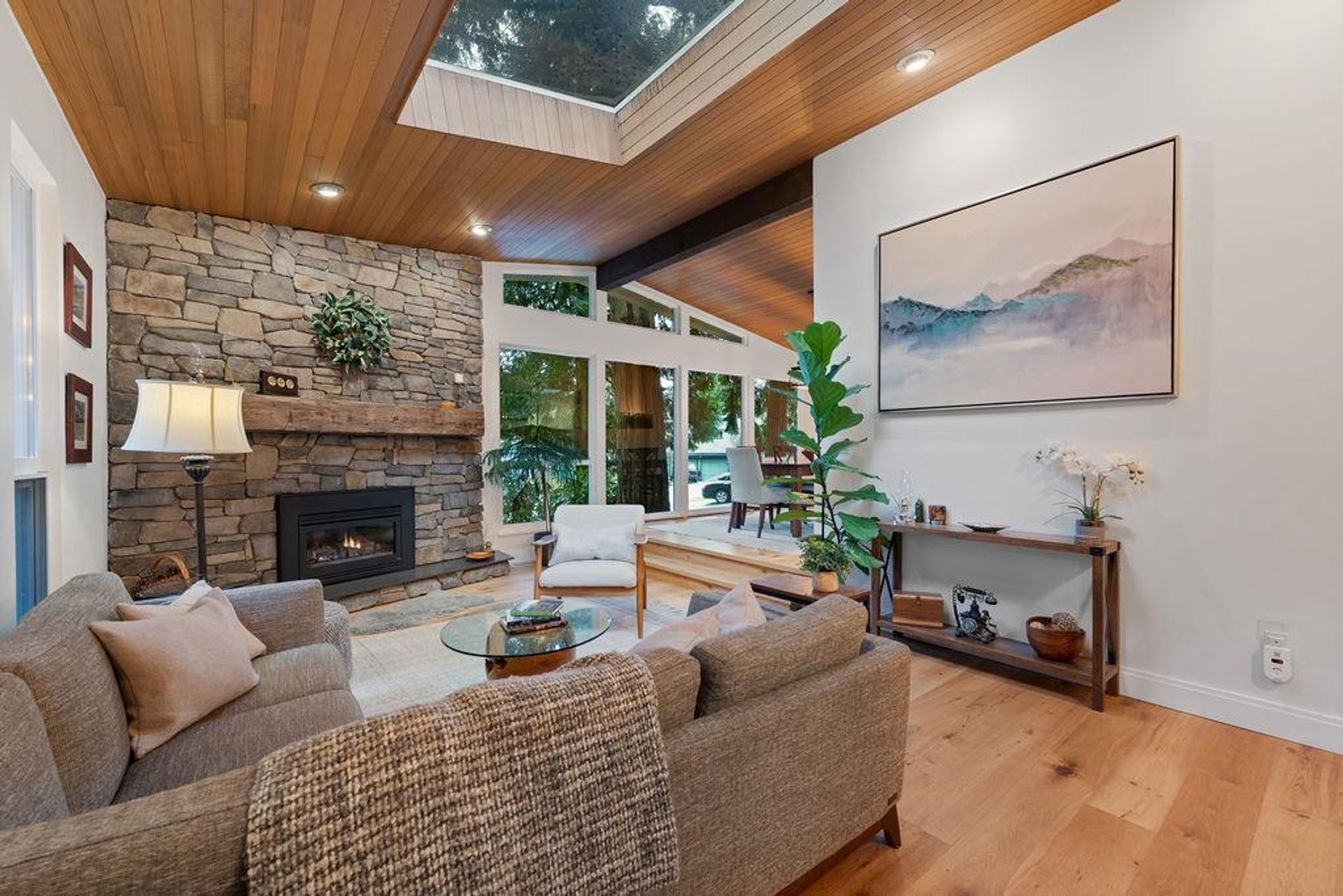 Your West Coast Oasis with stunning city, mountain & river VIEWS awaits! Perched on a quiet cul-de-sac, this meticulously upgraded home offers approx 2,426 sf of living space on an oversized 13,000+ sf lot, backing on to a private ravine. Experience Whistler retreat vibes w/ vaulted cedar plank ceilings, skylights drawing in natural light, upgraded thermal windows, elevated dining room w/ views, & a beautiful brick wood-burning fireplace. A well-appointed kitchen features SS appliances, casual breakfast nook, and overlooks the lower-level family room w/ access to an expansive backyard. Plus, a covered breezeway leading to a large double garage, RV Parking, and a rear workshop/shed. This is truly a one-of-a-kind GEM property that cannot be missed - book your showing today!