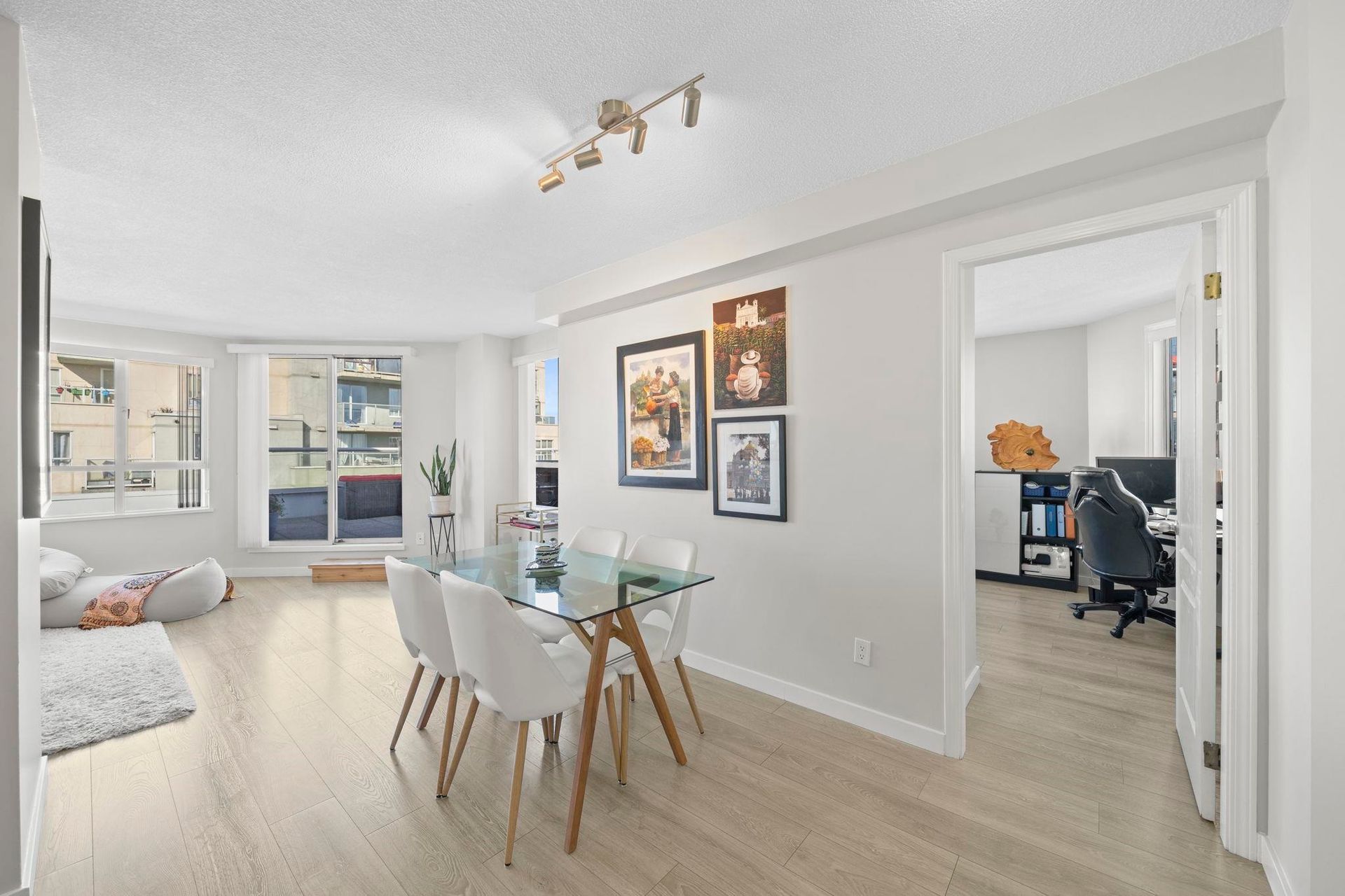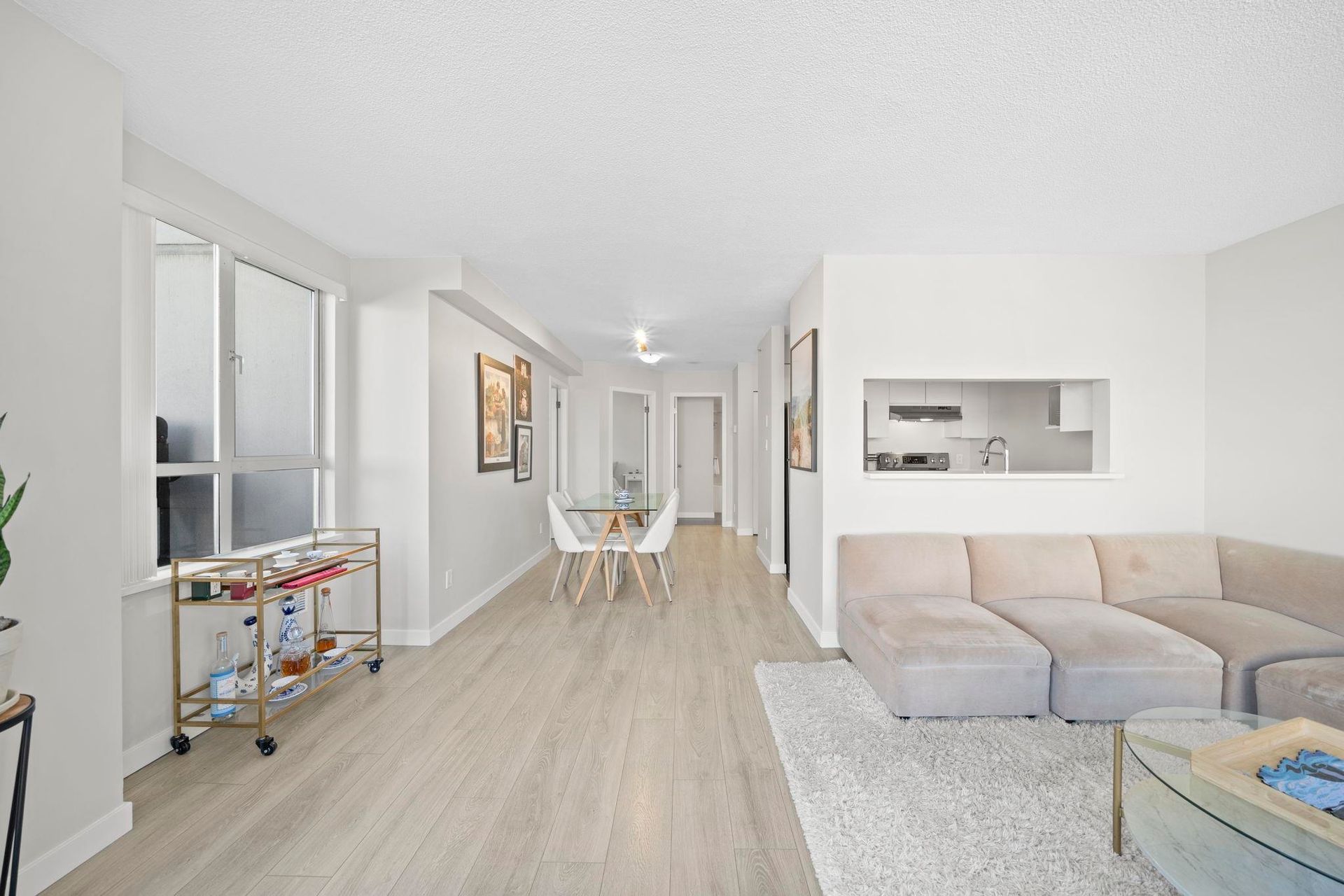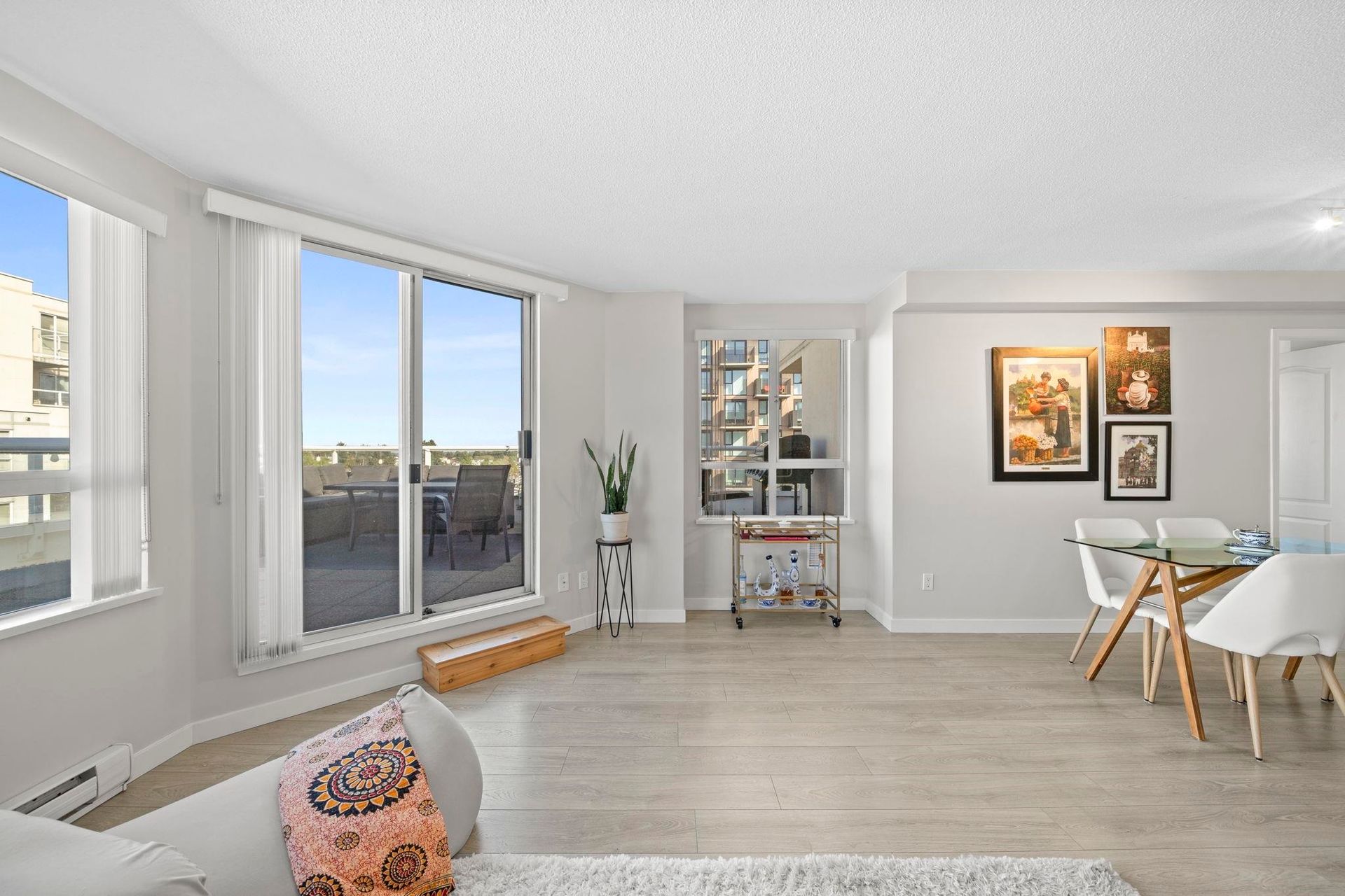 Attention first-time buyers! Breathtaking North Shore mountain & city views await you from this 2 bedroom corner home in Collingwood! Featuring a highly-functional floor plan on the quiet side of the building, this home has been kept meticulously (think SHOW HOME!) and has been updated with laminate flooring throughout, quartz countertops, bathroom & appliance upgrades, and more! Enjoy summer evenings on your oversized & private 275sf terrace capturing the city's best views! The building offers a well-managed strata, shared courtyard, an updated laundry room with commercial grade machines, and is conveniently located steps to Joyce skytrain! Includes 1 parking & 1 storage locker. Truly incredible value you won't want to miss - book your private showing today!